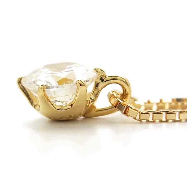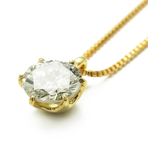 ダイヤモンドネックレストップはイエローゴールドの地金を使用して、チェーンは0.6パイの長さ40cmチェーンを使用しています。