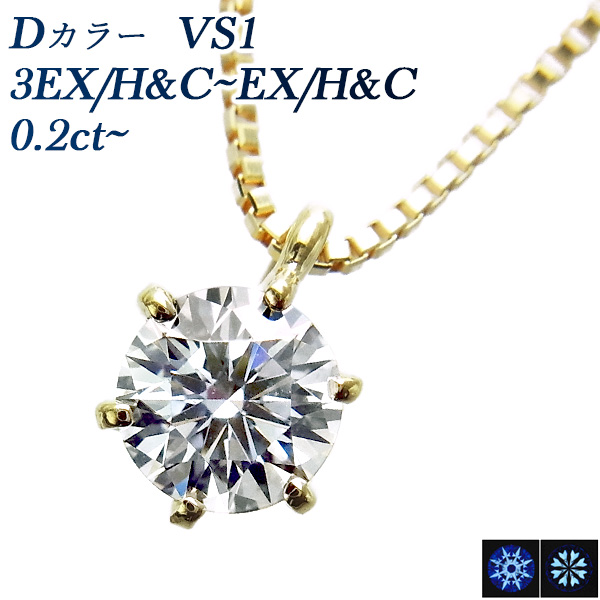 ダイヤモンド ネックレス 一粒 0.2ct D VS1 3EX H&C~EX H&C 18金 中央宝石研究所 鑑定書付 【R】