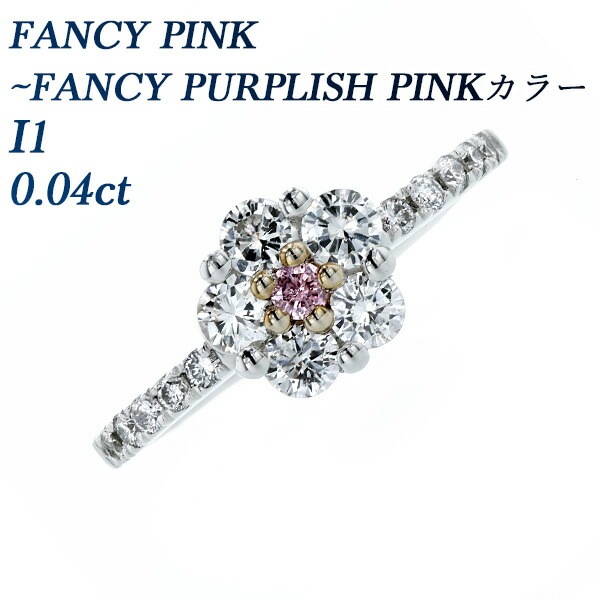 ピンクダイヤモンド リング 0.04ct I1-FANCY PINK 脇石0.60ct プラチナ 中央宝石研究所 ソーティング付【R】