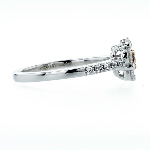 ピンクダイヤモンドの周りに5石無色透明なラージメレダイヤモンド・アーム部分に10石ダイヤモンドを合計0.60ct石留しており、ピンクダイヤモンドをより引き立たせたデザインに仕上がっております。