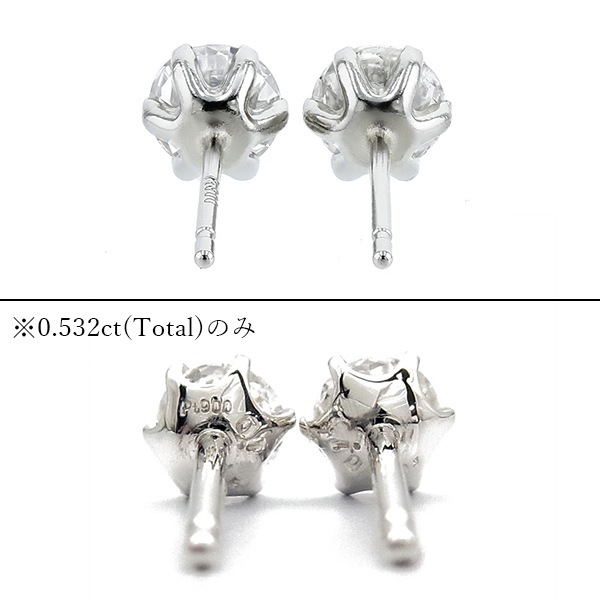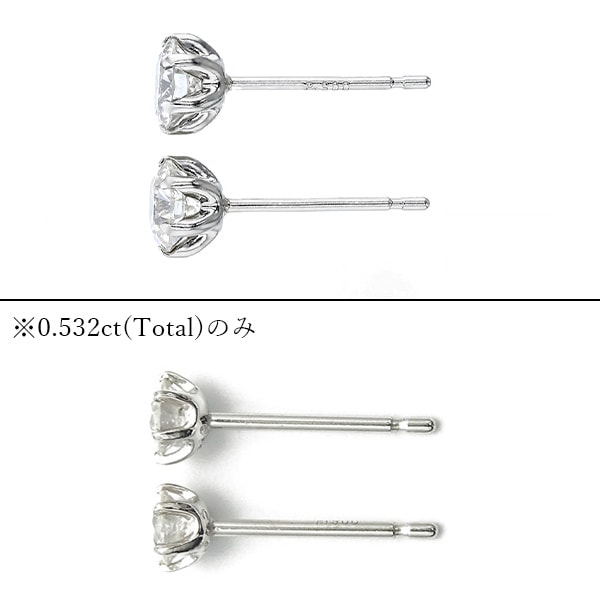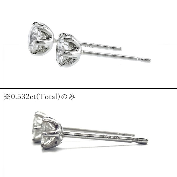 ダイヤモンド ピアス 一粒 0.5ct(Total) SI1~2 E~J VERY GOOD~GOOD プラチナ 中央宝石研究所 ソーティング付 【R】