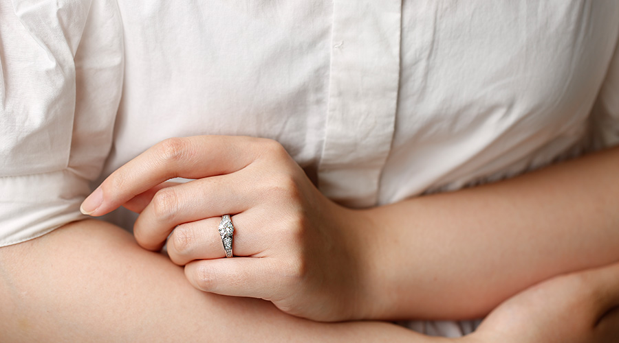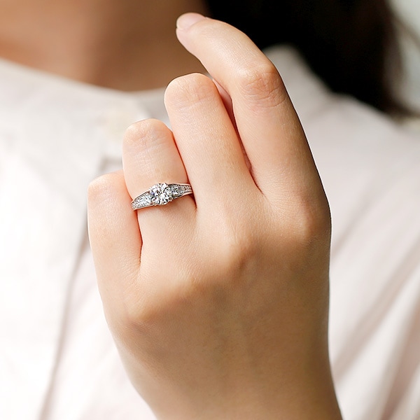 大粒のダイヤモンドに素敵なデザイン枠とのバランスはラグジュアリーそのもの。
