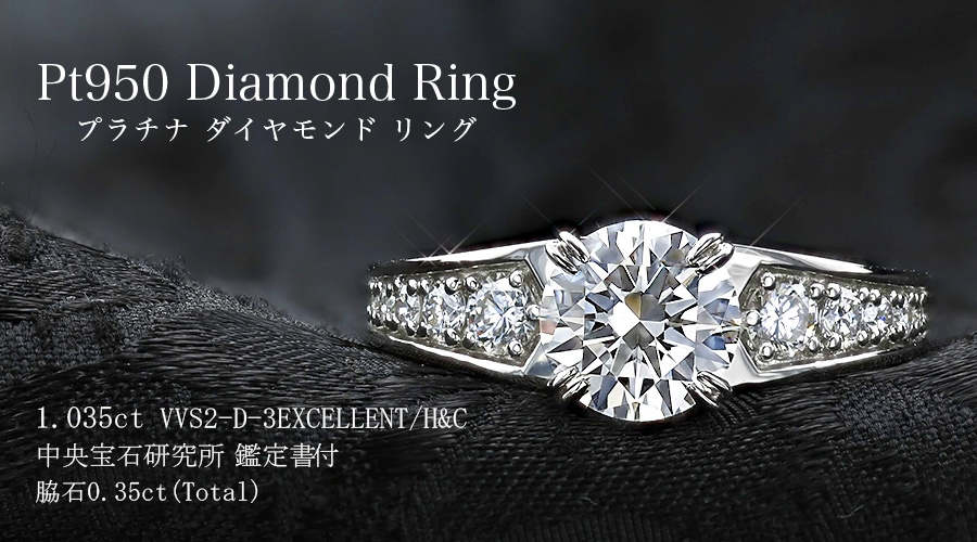 ダイヤモンド リング 1ct D VVS2 3EX H&C プラチナ 中央宝石研究所 鑑定書付 【R】