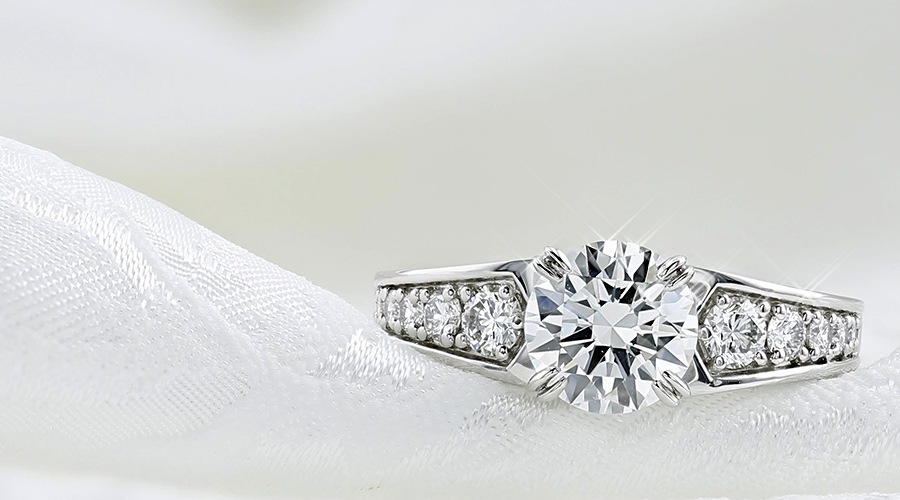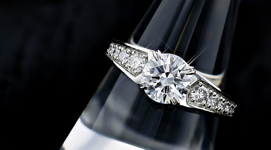 ダイヤモンドの輝きは眩しすぎるほど美しく輝いております。