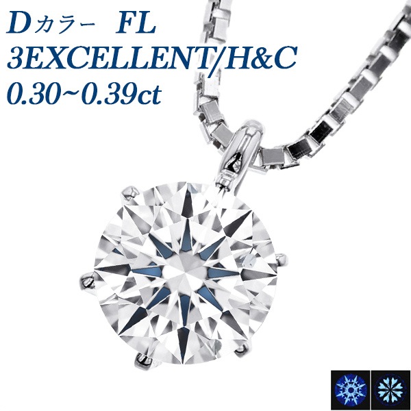 ダイヤモンド ネックレス 一粒 0.3ct D FL 3EX H&C プラチナ 中央宝石研究所/GIA 鑑定書付 【R】