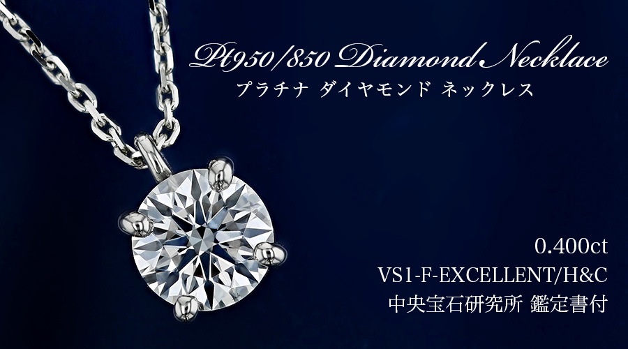 ダイヤモンド ネックレス 一粒 0.400ct F VS1 EX H&C プラチナ 中央宝石研究所 鑑定書付 【R】