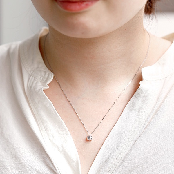 当店の一粒ダイヤモンドネックレスは極力小さな爪で留めておりますので、ダイヤモンドの輝きを最大限に生かすセッティングになります。