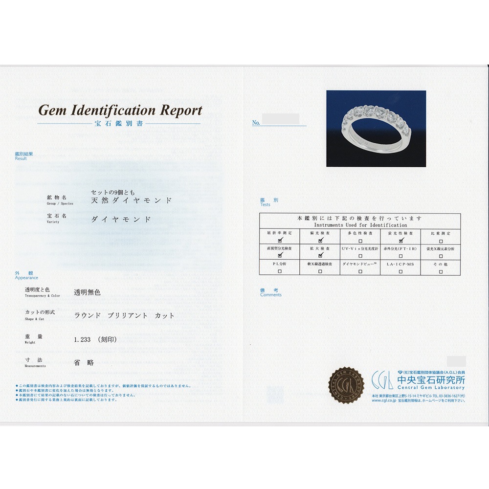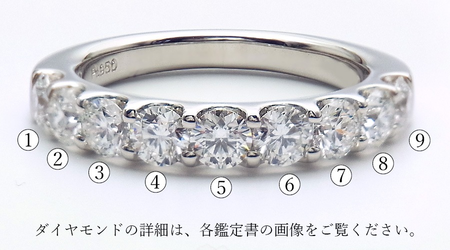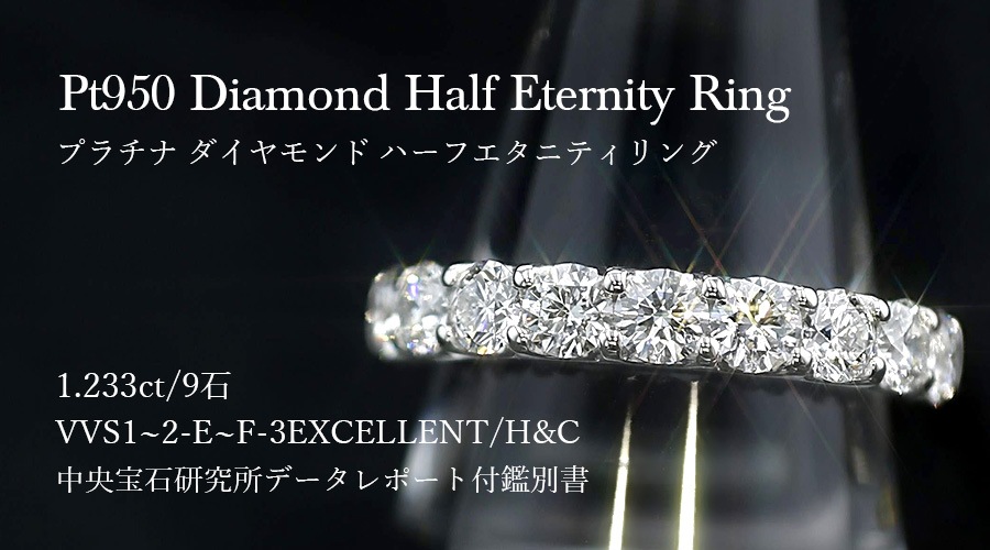 ダイヤモンド エタニティ リング 1.233ct(Total)/9石 E~F VVS1~VVS2 3EX H&C プラチナ 中央宝石研究所 データレポート付き鑑別書付 【R】