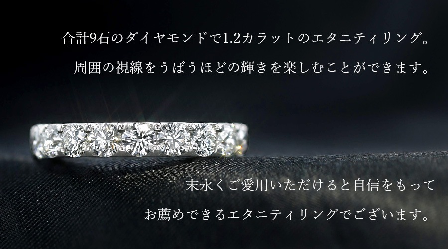 合計9石のダイヤモンドで1.2カラットのエタニティリング。