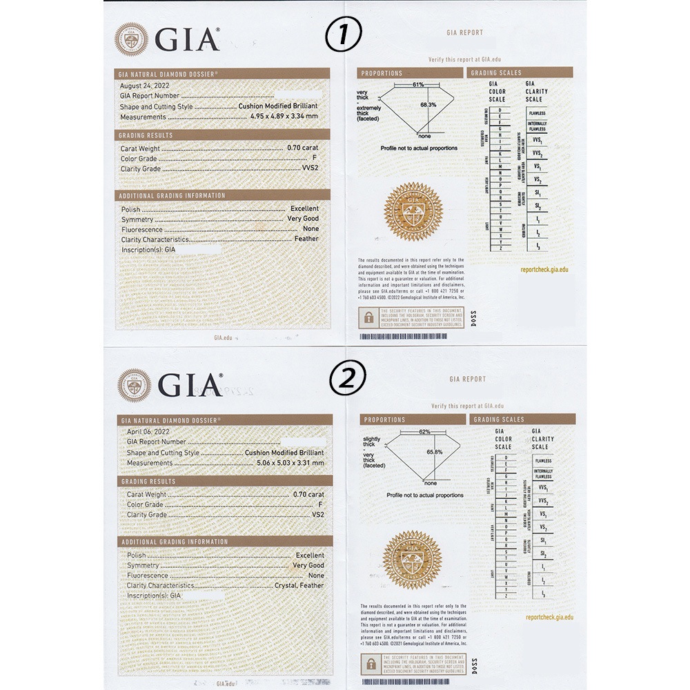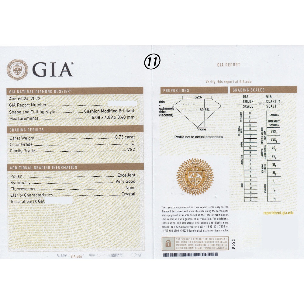 11石全てにGIAの鑑定書ナンバーがダイヤモンドガードル部分に刻印された唯一無二のダイヤモンドになります。