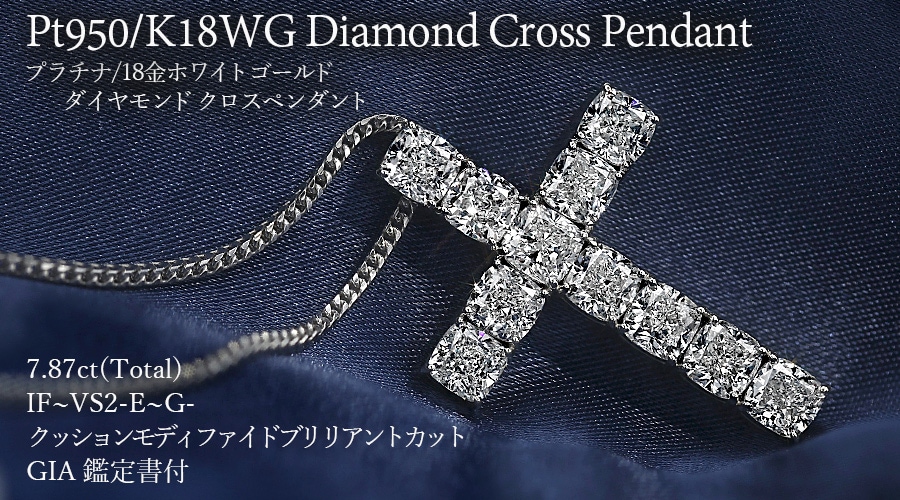 ダイヤモンド クロスネックレス 7.87ct(Total)/11石 E~G IF~VS2 クッション モディファイド ブリリアントカット プラチナ GIA 鑑定書付 【R】