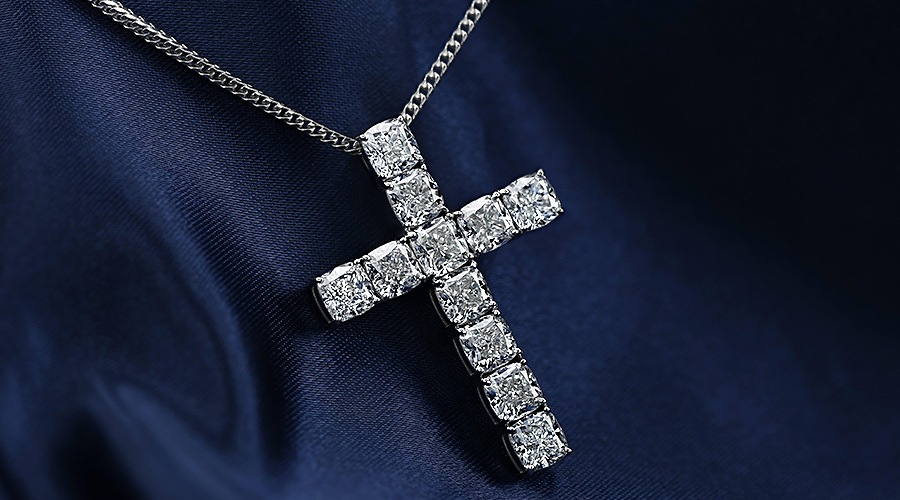 11石すべてが高品質で揃えられている、とても貴重で贅沢な究極のクロスネックレス。