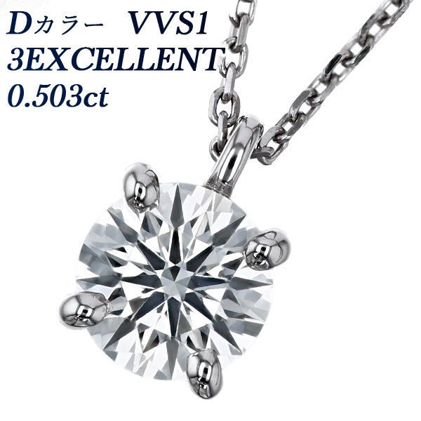ダイヤモンド ネックレス 一粒 0.5ct D VVS1 3EX 4本爪 プラチナ 中央宝石研究所/GIA 鑑定書付 【R】