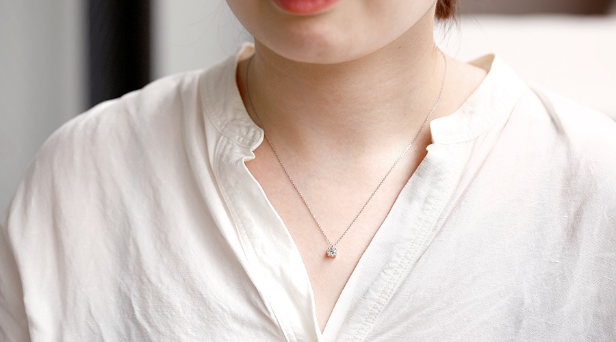 当店の一粒ダイヤモンドネックレスは極力小さな爪で留めておりますので、ダイヤモンドの輝きを最大限に生かすセッティングになります。