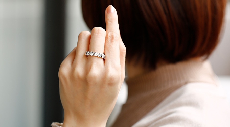 フルエタニティとは指輪全周にダイヤモンドがセットされたデザインのこと。
