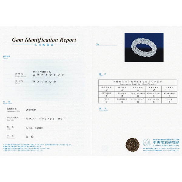 中央宝石研究所は国内最大で大変権威ある鑑定機関です。ご安心して確かな品質のダイヤモンドをお求めいただけます。ダイヤモンドを等級分けします鑑定機関は非常に大事なポイントなので決して妥協はしないで下さい。