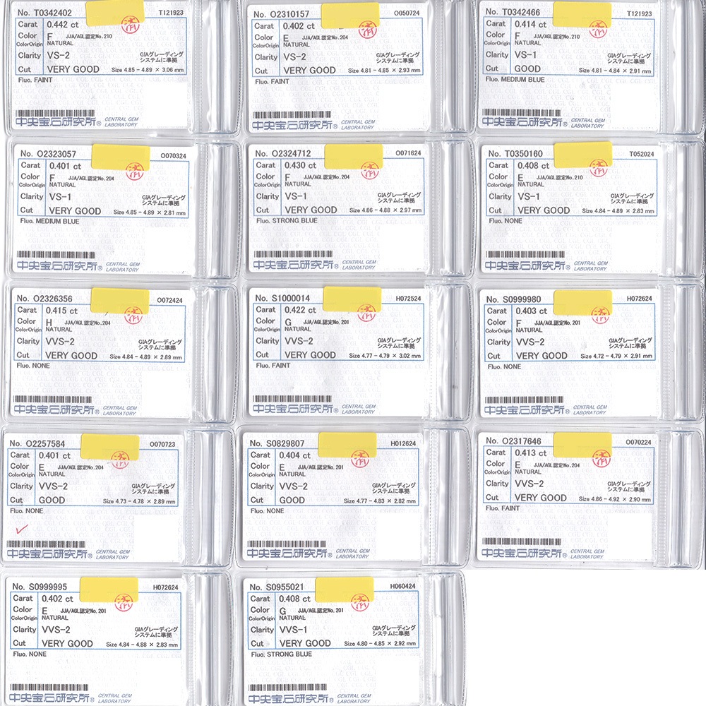 13. 0.402ct E VVS2 VERY GOOD 14. 0.408ct G VVS1 VERY GOOD