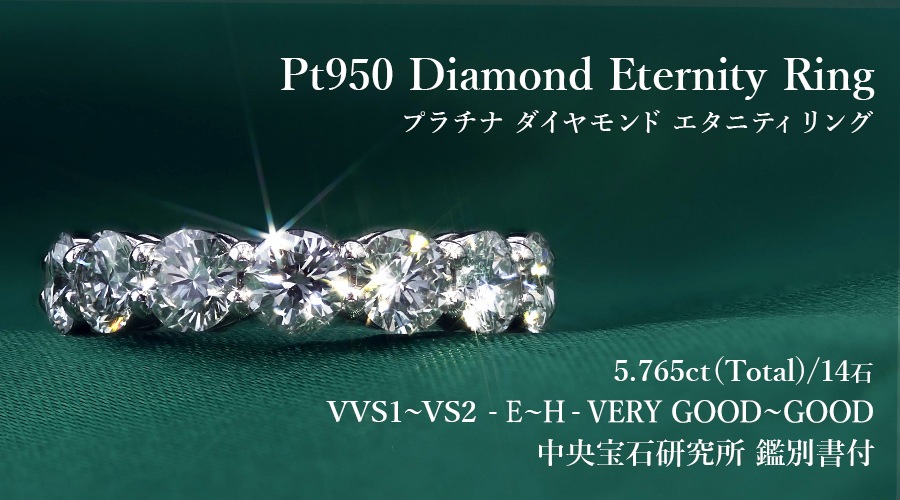 ダイヤモンド フルエタニティリング 5.7ct(Total) / 14石 E~H VVS1~VS2 VERY GOOD~GOOD プラチナ 中央宝石研究所 データレポート付き鑑別書付 【R】