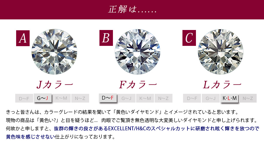 ダイヤモンドクラリティは10倍の拡大鏡で内包物の発見ができない【 IF 】ダイヤモンドを使用しています。カラーは肉眼で僅かに黄色く見えます【 L カラー 】ダイヤモンドです。