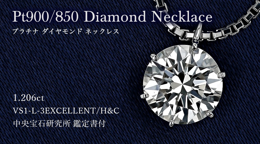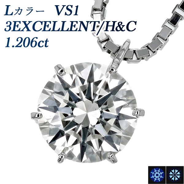 ダイヤモンド ネックレス 一粒 1.2ct L VS1 3EX H&C プラチナ 中央宝石研究所 鑑定書付 【R】